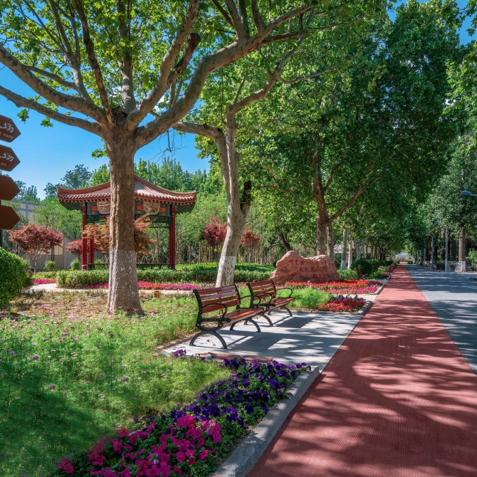 改造之后的二宮公園綠化面積約9.5萬平方米,新增近百種植物,景觀設計強化公園屬性,結合低碳理念,最大限度拓展生態空間,以促進碳吸收增加碳匯作用,通過城市綠地降低熱島效應。