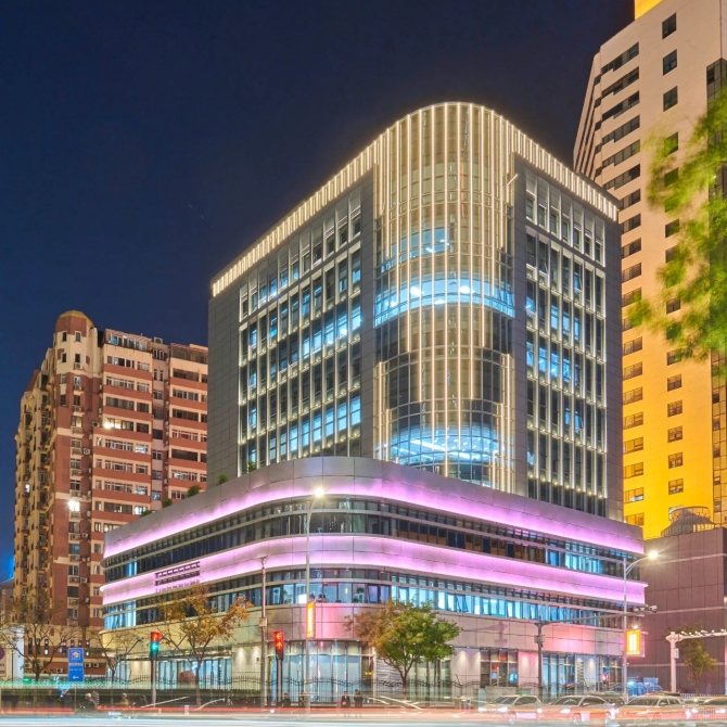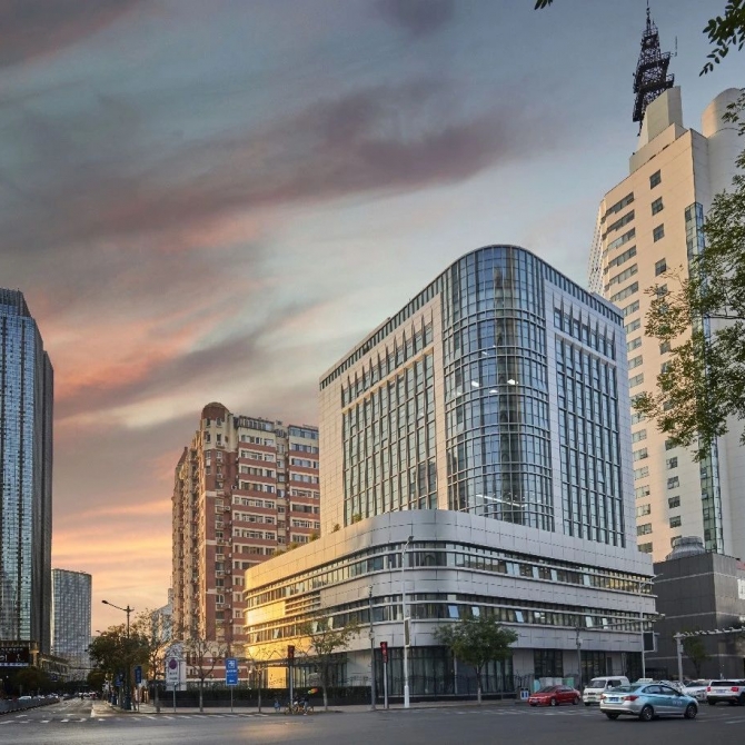 在充分考慮意風區整體風格以及用地所在的小街區范圍內現有建筑風格后,建筑整體外觀理性地選擇了現代的手法,不做過度裝飾。金屬幕墻的選擇和局部造型的處理是為了呼應與本項目一街之隔的業主總部,從形象上突出建筑的從屬關系和整體性。建筑東南角考慮與大沽橋的視覺關系,增加街道界面,有意在造型上進行了圓角處理,使整體建筑外觀更加溫潤,不張揚。