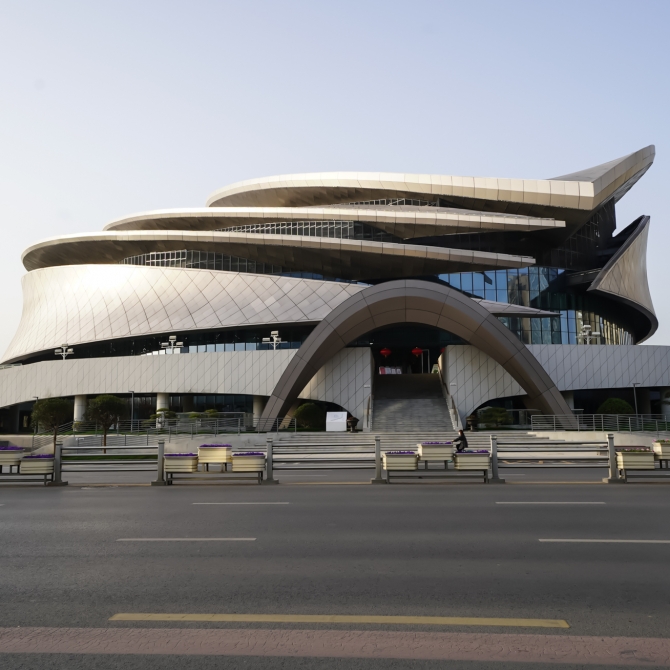 其中,主劇場舞臺面積達到1600平方米,并采用了國際先進的機械設備和燈光設備、階梯式自動升降臺和旋轉舞臺,可滿足各種會議的召開和國內外大型歌舞劇、芭蕾舞劇、大型交響樂、傳統戲劇等不同類型的文藝演出。小劇場為輔助演出空間,可容納516個坐席,采用機械式多功能舞臺,可實現 4~5 種變化形式,座位亦可隨舞臺變化而改變,在同一空間內滿足不同的演出要求。劇院內部還附設前廳、休息廳、后臺服務用房、演員休息區、貴賓室等輔助空間,創造良好的硬件環境以滿足劇院建成后正常經營管理的需要。
