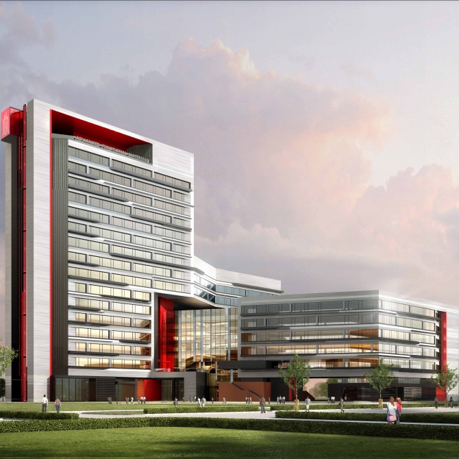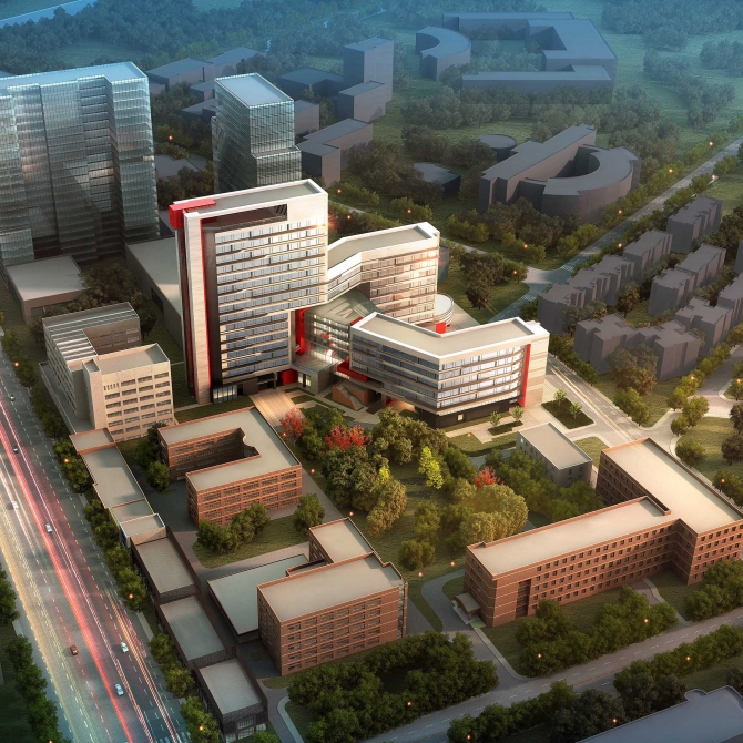 我們在設計中要充分考慮兩種基本模式的優缺點,有機整合兩種模式的優點,形成“三枝”層層跌落的組合布局模式,高分子工程科學與工程學院、材料與工程學院、待定學院各占一枝,交叉處為中心共享大廳。該科研大樓垂直的功能從公共開放到私密獨立順勢展開,形成從水平和垂直功能上的合理布局。北高南低的建筑形體,節省了最寶貴的校園用地,為南側未來校園再次建設創造最有利的基礎。西側高東側低的形體變化使得建筑在城市道路上具有標志性,對校園建筑形成最小的壓抑和影響。