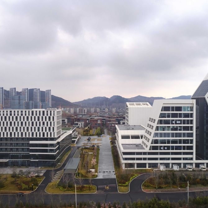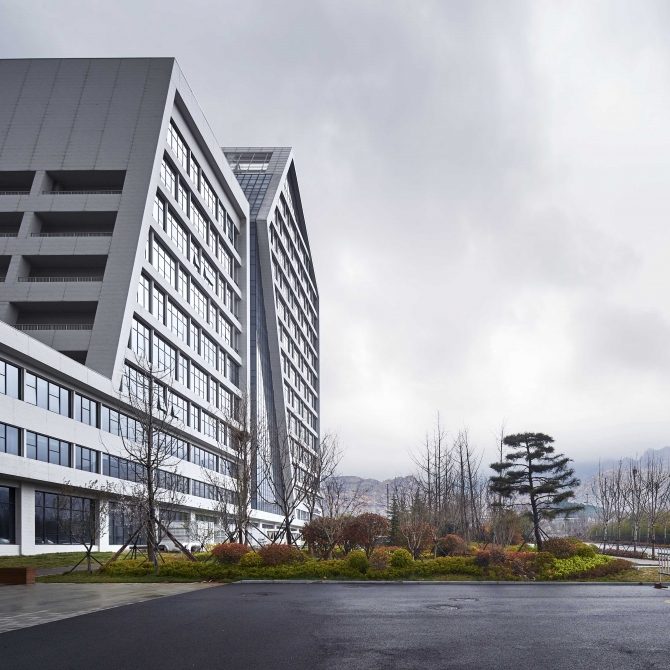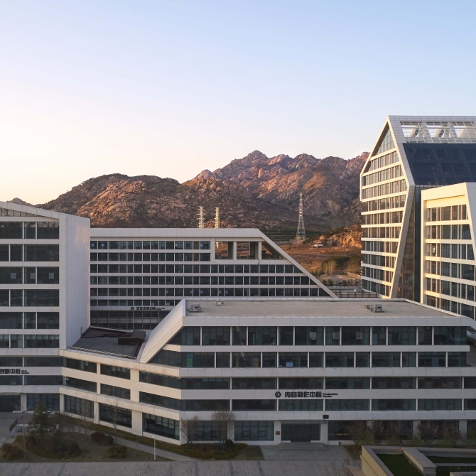 創(chuàng)智產(chǎn)業(yè)園的設(shè)計強調(diào)以人的生活工作為空間線索,在單體設(shè)計上采用相互連接的方式,構(gòu)成了空間豐富的園區(qū)建筑群,體現(xiàn)了創(chuàng)智產(chǎn)業(yè)園所強調(diào)的突出公共性和開放性的現(xiàn)代精神。同時,面對現(xiàn)代城市飛速發(fā)展和擴張,“大隱隱于市”是城市人追求高端生活品質(zhì)的夢想,同時也是建筑師為未來城市描繪的愿景、為新的城市生產(chǎn)生活環(huán)境提出的目標(biāo)。考慮到人們寄托在自然中的情懷和對自身精神世界的追尋,與環(huán)境融合的創(chuàng)智產(chǎn)業(yè)園既有現(xiàn)代城市所能提供的便利,也有東方人心中的山水情懷。將城市的空間形態(tài)特征與功能和青島西海岸獨特雄渾而蒼茫的山水意境結(jié)合起來,建造以人的精神和文化價值觀為核心的科技園區(qū),為置身其中、工作勞碌的使用者的日常生活注入情懷和詩意,令每一個使用者生活、工作、游走于其間的同時能夠體驗、感知、享受群山環(huán)繞、融于自然的感覺和創(chuàng)業(yè)的激情。